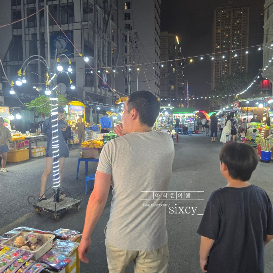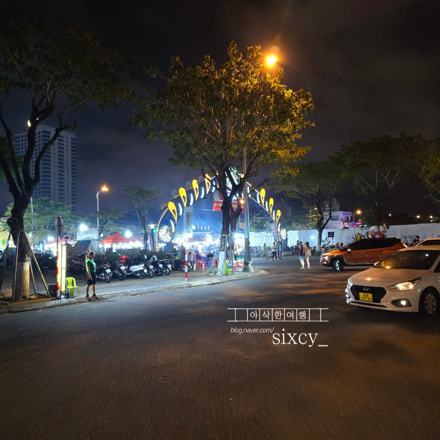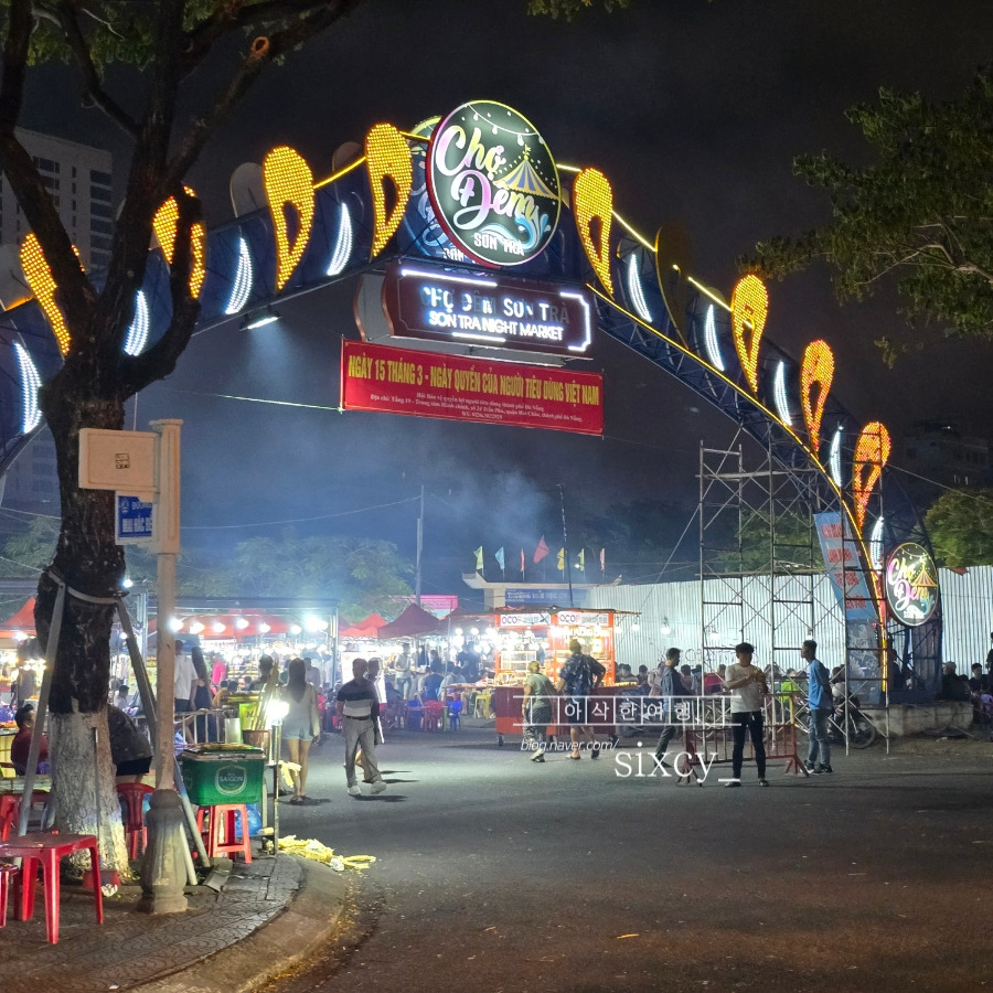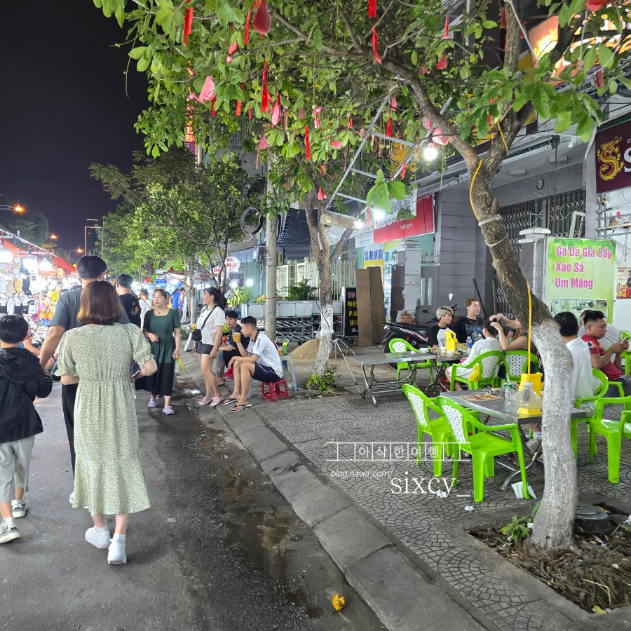 입구부터 화려한 조명과 함께 포장마차와 테이블이 길가에 줄지어 있어 저녁에도 환한 분위기를 자아냅니다. 사람들의 활기찬 모습과 요리 냄새로 북적여 다낭의 야시장을 온전히 즐길 수 있는 곳이죠.